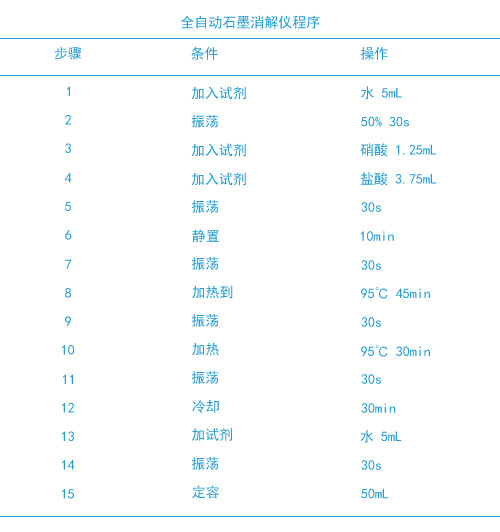 本文章采用全自動石墨消解儀作為無機樣品前處理,采用濕法消解原理,可將復雜的試驗步驟全部程序化,只需電腦上設置好一鍵啟動就可以自動加酸、搖勻、振蕩、加酸、趕酸、消解、冷卻、定容。下面根據《土壤質量總汞、總砷、總鉛的測定原子熒光法》標準方法處理土壤樣品。