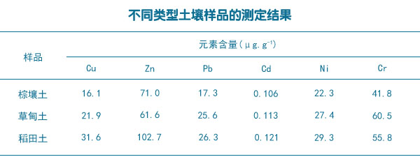 用全自動石墨消解采集的棕壤土、草甸土和稻田土三種樣品進行了實際樣品測試,測試結果如下。