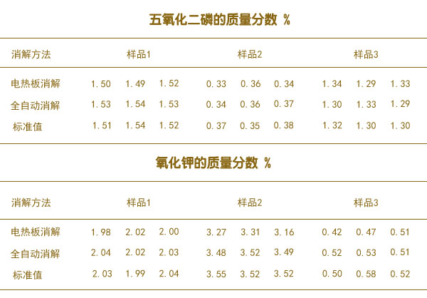 有機肥消解后五氧化二磷與氧化鉀的測定結果