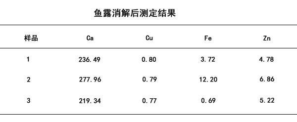 將三種品牌魚露通過上述的消解步驟進行前處理得出結果如下列表格所示。