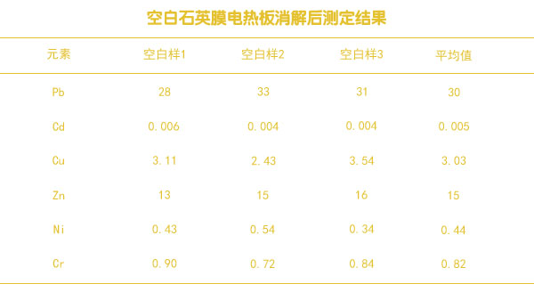 空白石英膜實驗電熱板消解后測定結果表