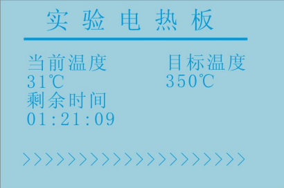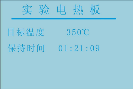 【啟動】鍵按照設置好的目標溫度和保持時間,啟動電熱板,開始加熱。若開機就按“啟動”鍵,則按照上一次設置的目標溫度和保持時間加熱。