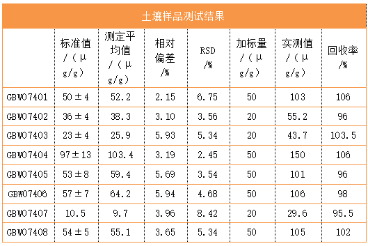稱取烘干的土壤樣品0.2000g于微波消解罐中,加入少量水潤濕樣品,再加入3mL硝酸、3mL HF、1mL磷酸,擰緊消解罐后放入格丹納A8微波消解儀中進行消解。冷卻后,打開消解罐,將溶液移入100 mL聚四氟乙烯燒杯中,將燒杯置于170℃ 格丹納HT-300實驗電熱板上蒸至溶液剩1mL左右時,加入2mL硝酸,再次蒸至剩余1 mL左右,再加入5mL(1+1)鹽酸,冷卻后,將溶液轉移至100mL容量瓶,超純水定容后,上機待測。