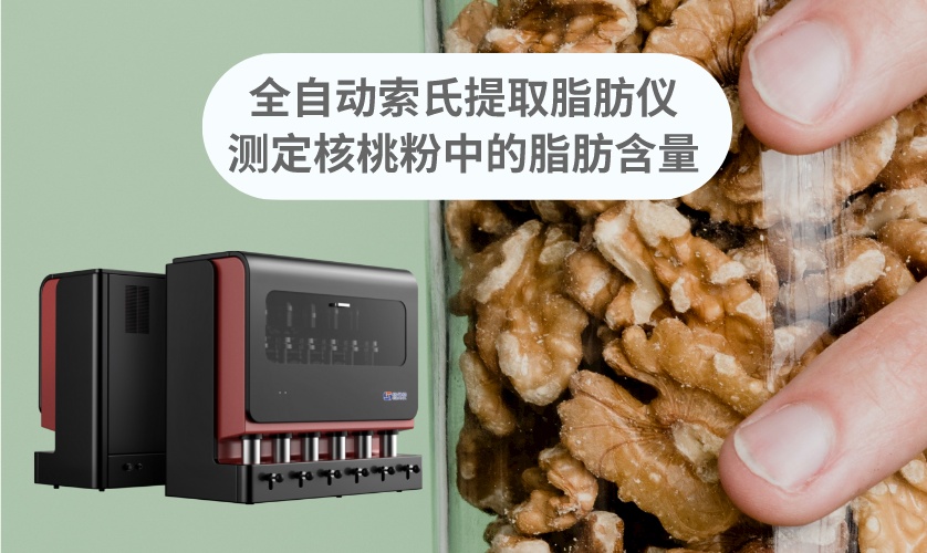 對于核桃仁,我們熟知的一種功效就是多吃能健腦益智。核桃仁里面含有一些對我們大腦有益的營養成分,如維生素B和E、微量元素磷脂和鋅,能夠促進我們腦部發育的元素。核桃仁還有保護心血管、抗衰老、防便秘的功效。雖然功效多多,但核桃屬于高熱量的食物,含有的脂肪還是較多。核桃中的蛋白質,脂肪碳水化合物在進入身體之后脂肪就會迅速堆積,易出現肥胖。如何測定核桃中脂肪含量,本實驗采用FT-660全自動索氏提取脂肪儀進行測定。